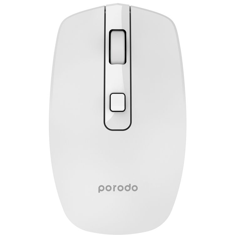 Porodo 1600 DPI Wireless Dual Mode Mouse with 10m Wireless Range, 30 Days Working Time, Built-in Battery - White