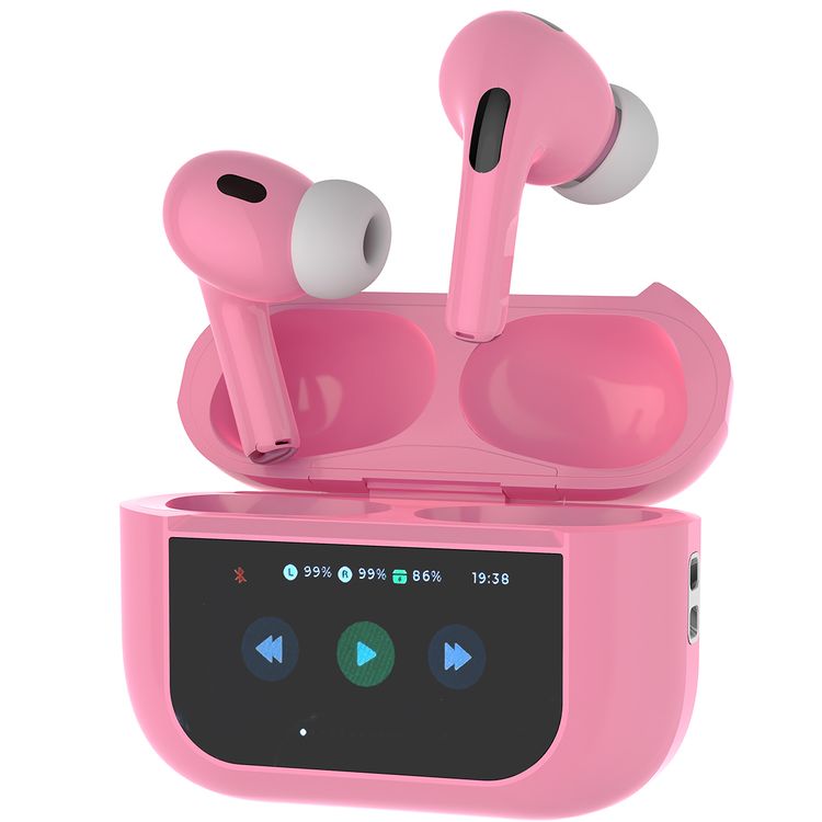 Porodo Blue AirPods Pro2 with Screen, Deep Bass, Touch Control, Camera Shutter, Music Playback, Call Management, 20 Hours Working Time, 1.47 inches Screen size - Pink