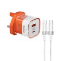 Porodo Crystal Shell GaN Wall Charger with 1.2m USB-C Cable Included, Simultaneous Charging, 20W Power Delivery, Overheat Protection, 18W USB-A Output - Orange