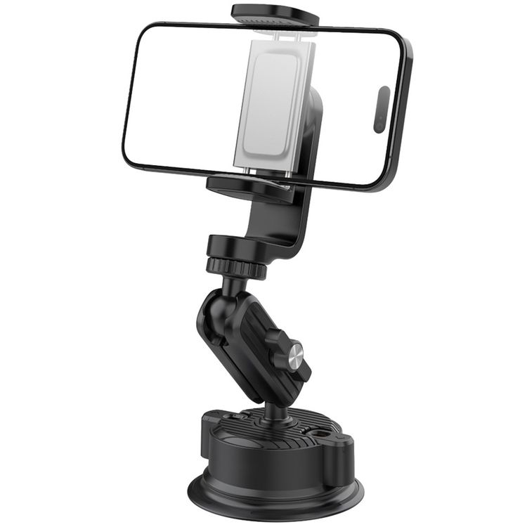 Porodo Dashbord Windshield Exterior Phone & Camera Mount, Nylon + Aluminum Alloy, Strong Suction, Strong Adhesion, Quick Installation, 360° Adjustable - Black
