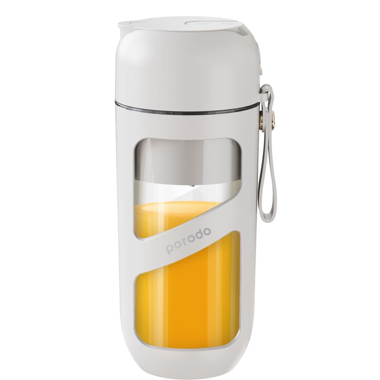 Porodo Lifestyle Juice & Smoothie Blender Vacuum Fresh Portable, 10 Cups Full Charge, 380ml Capacity, Built-in Straw, 1500mAh Battery, Stainless Steel Blades - White