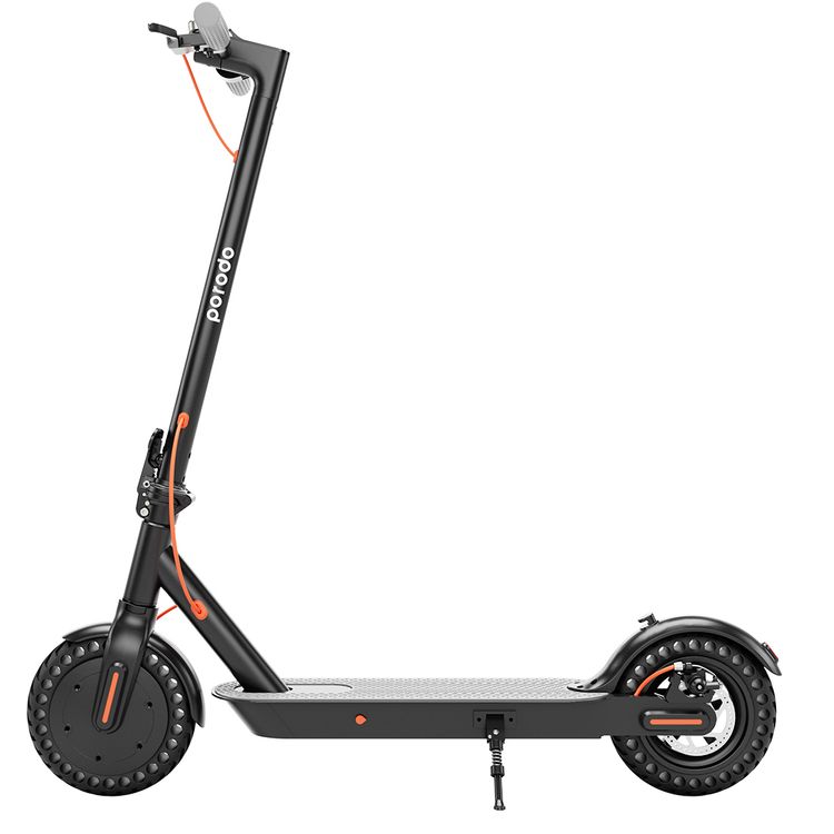 Porodo Lifestyle Electric City Scooter Pro with Integrated Phone Mount & Helmet, Up to 30km/h Speed, 80kg Load Capacity, 8.5" Wheelbase, 12° Incline, Front Electronic Brakes & Rear Disc Brakes, Front LED Headlight & Tail Light - Black
