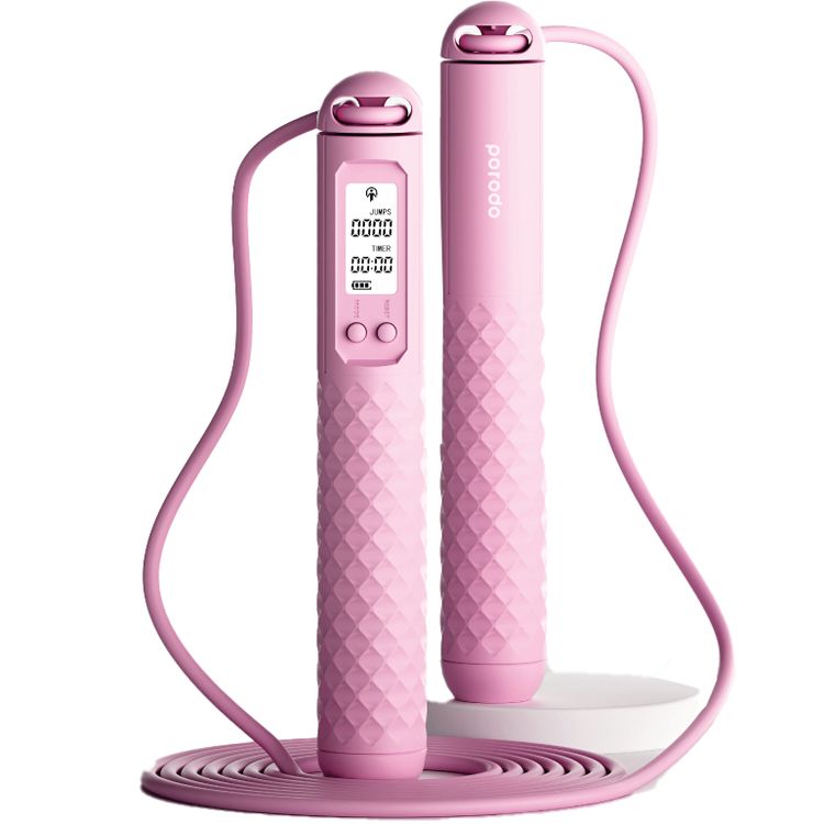 Porodo Lifestyle Smart Skipping Rope Forward & Reverse Counts, Battery Display Set Time - Pink