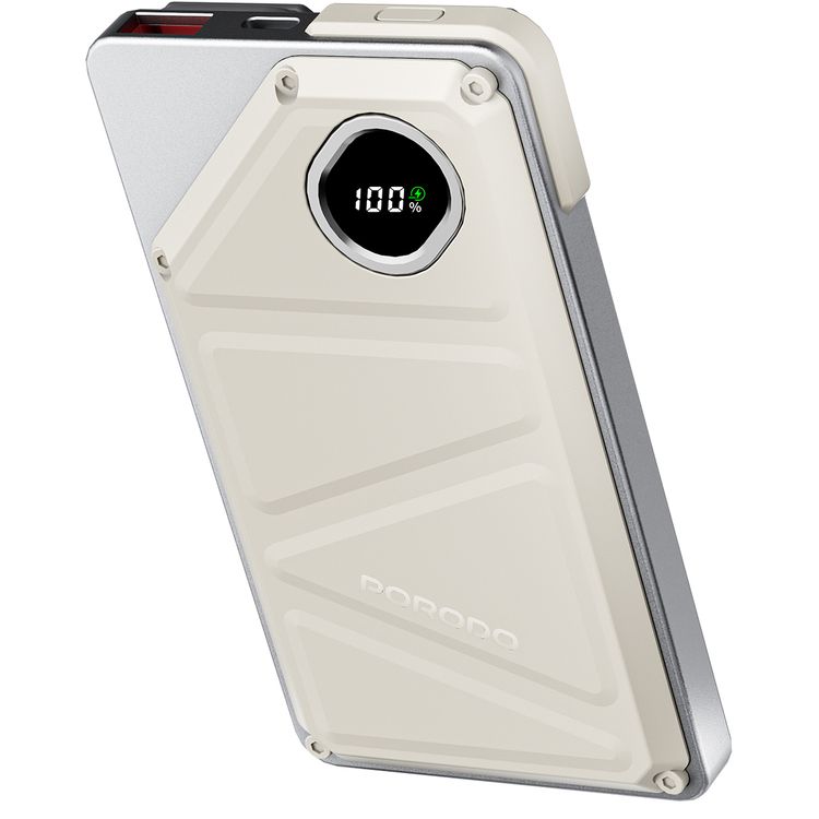 Porodo Power Bank 2x Type-C, 10000mAh, 2.4A Lightning, 22.5W USB-A Output, PD 20W, Digital Display, Simultaneous Charging - White