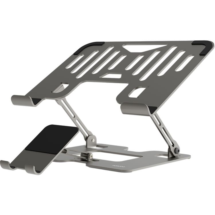 Porodo Smart Folding Multi-Device Stand with Phone Holder, Carbon Steel & Silicone Rubber Material, 10-17" Devices Compatible, Adjustable Height & Angle, Folding Design, Non-Slip & Secure - Silver