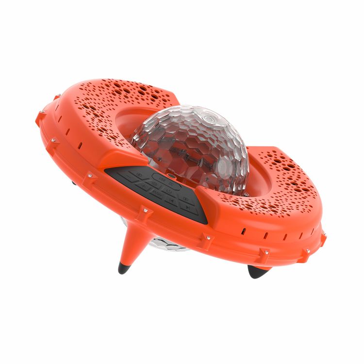 Porodo Soundtec Aqua Blast Floating Wireless Speaker with Chromatic Lamp, Up to 13 Hours Play Time, 2400mAh Battery Capacity, Sound Reactive Lighting, Micro SD Slot, IPX7 Water-Resistant Level - Orange