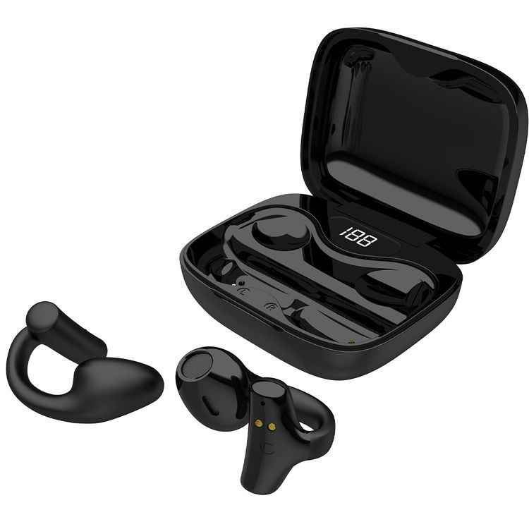 Porodo Soundtec TWS Ear Clip, 10m Transmission Range, Bluetooth V5.3, Up to 24 Hours Play Time, 300mAh Battery Capacity - Black
