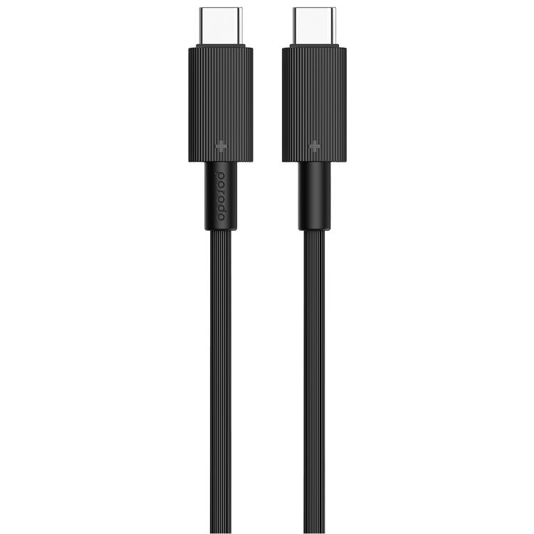 Porodo USB-C to USB C PVC Cable, 480Mbps Transfer Speed, 60W Power Delivery, more than 15000 Bends Life Span, 1.2m Cable Length, Tangle Free - Black