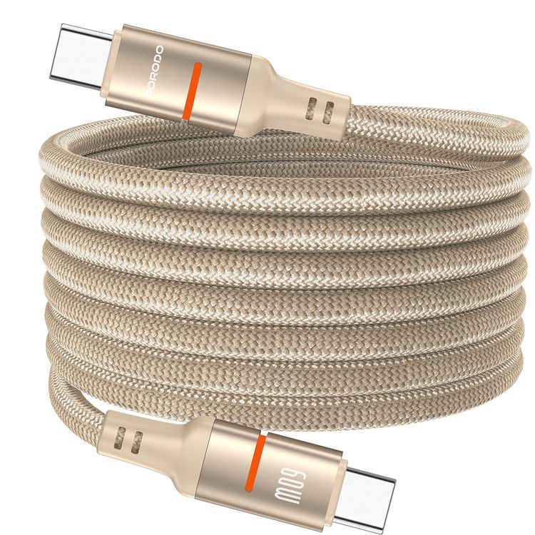 Porodo Type-C to Type-C Magnetic Braided Cable with 60W Power Delivery, 1.2m Cable Length, More than 15,000 Bends Lifespan, Tangle-Free Design - Gold