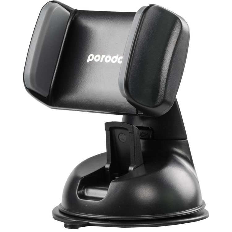 Porodo Universal Phone Mount with Adjustable Clamp, Strong Suction Base, 360° Rotation, Up to 6.5'' Devices Compatibility, One-Hand Operation, Vertical and Horizontal Phone Positioning - Black