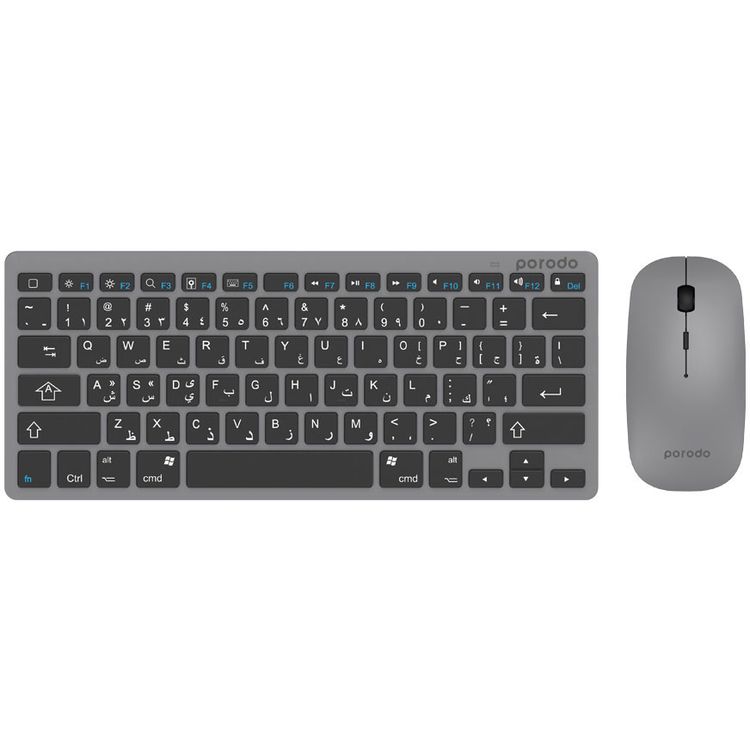 Porodo Wireless Super Slim and Portable Bluetooth Keyboard with Mouse ( English / Arabic ) 800-1600 DPI, Ultra-Thin Lightweight Compatible for Windows, Laptop, PC Desktop Computer - Gray