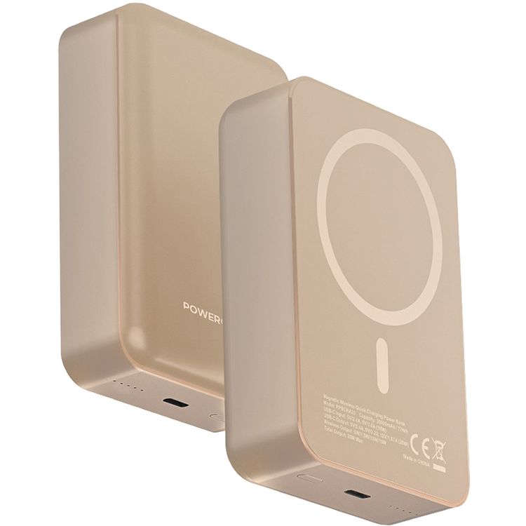 Powerology 20000mAh MagSafe Aluminum Power Bank with Battery Level Indicator, Lightweight & Compact Design, Fast & Simultaneous Charging, Type-C Input & Output, 15W Wireless Output - Desert Titanium