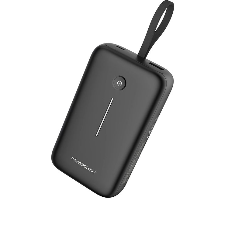 Powerology 20000mAh Power Bank with Detachable USB-C Wire, 30W Power Delivery, 3-Device Charging, Long Time Standby, Universal Phone Compatibility, Built-in Safeguards - Black
