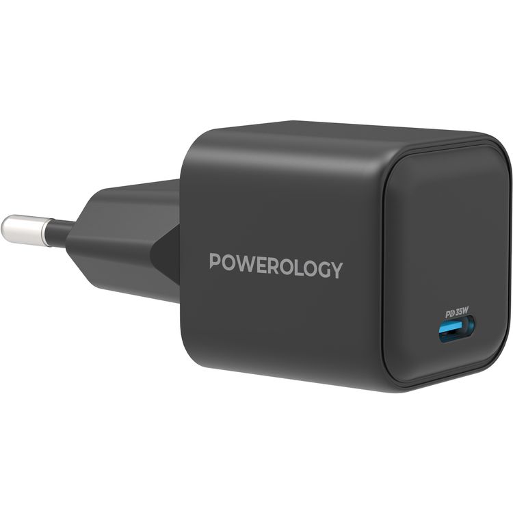 Powerology 35W GaN Charger with Single Type-C Port and EU Plug - Black