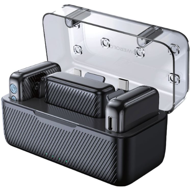 Powerology Dual Microphone Professional Set, 48 Hours Working Time, 450mAh Battery Capacity, 5.2 Bluetooth Version - Black