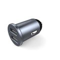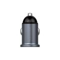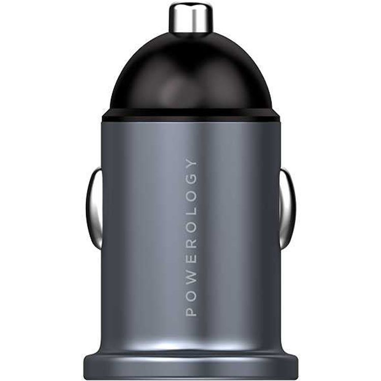 Powerology Dual USB-A Port Aluminum Mini Car Charger 4.8A 24W, Optimal Charging for Two Devices Simultaneously, Quick Charging Aluminum Car Adapter - Gray