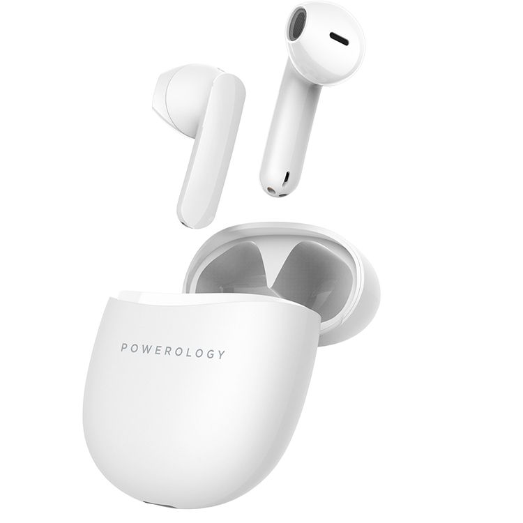Powerology Stereo Buds Plus, Siri Activation, 4h Playtime, Bluetooth 5.0, Siri Activation, Smart Touch Control, 400mAh Charging Box Battery Capacity - White