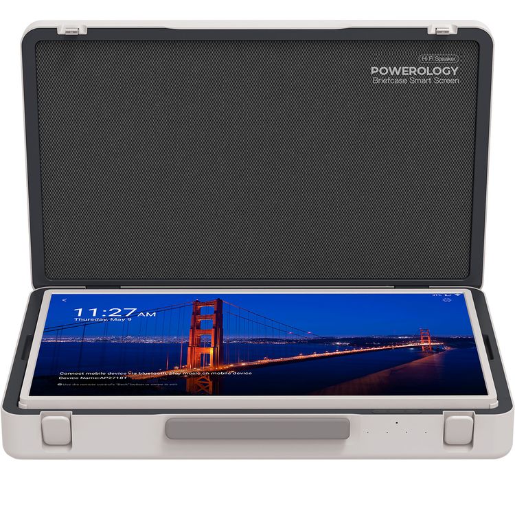Powerology UHD Portable Outdoor Tablet with 27 Inches Screen, Full HD, Android, Briefcase Display, 90° Adaptable Viewing Angles, Screen Mirroring - White