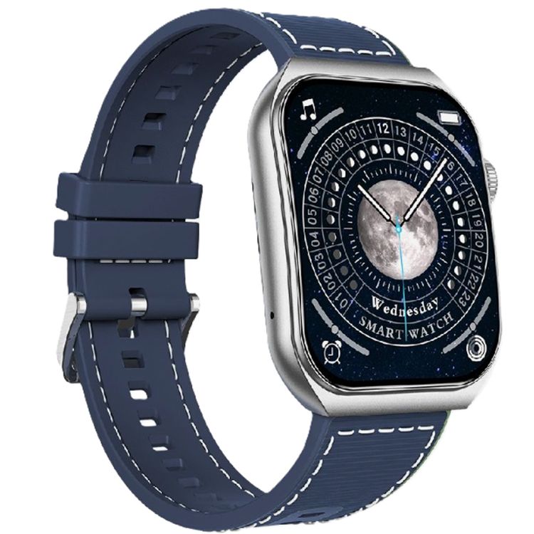 Swiss Military Alps 3 Smartwatch, 1.96" AMOLED Curved Glass Display, 1 Week Battery Life, Wireless Charging, Water Resistance, Receive and Makes Calls - Blue Silicon Strap