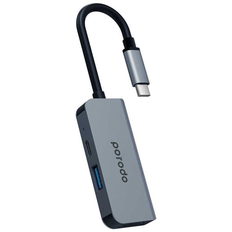Porodo 3 in 1 Aluminum USB-C Hub PD 87W - Gray