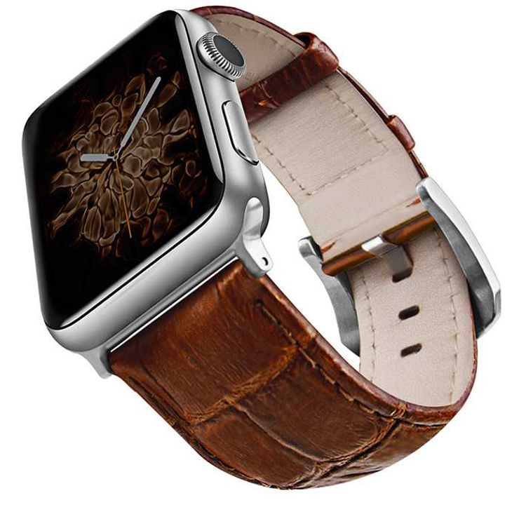 Viva Madrid Montre Crox Genuine Leather Strap Compatible for Apple Watch 42/44MM - Fit & Comfortable Replacement Wrist Band - Sweat Resistant & Lasting Durability - Brown/Silver