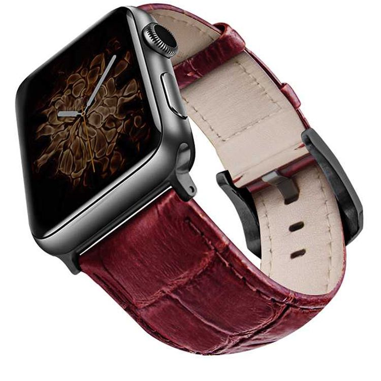 Viva Madrid Montre Crox Genuine Leather Strap Compatible for Apple Watch 42/44MM - Fit & Comfortable Replacement Wrist Band - Sweat Resistant & Lasting Durability - Red/Black