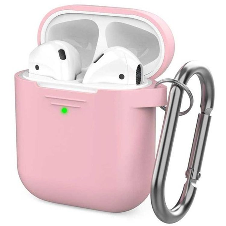 AhaStyle Keychain Silicone Case with Anti-Lost Ring for AirPods 1/2 Generation, Drop Resistant, Dustproof and Absorbing Protective Cover with Hang Case Pink