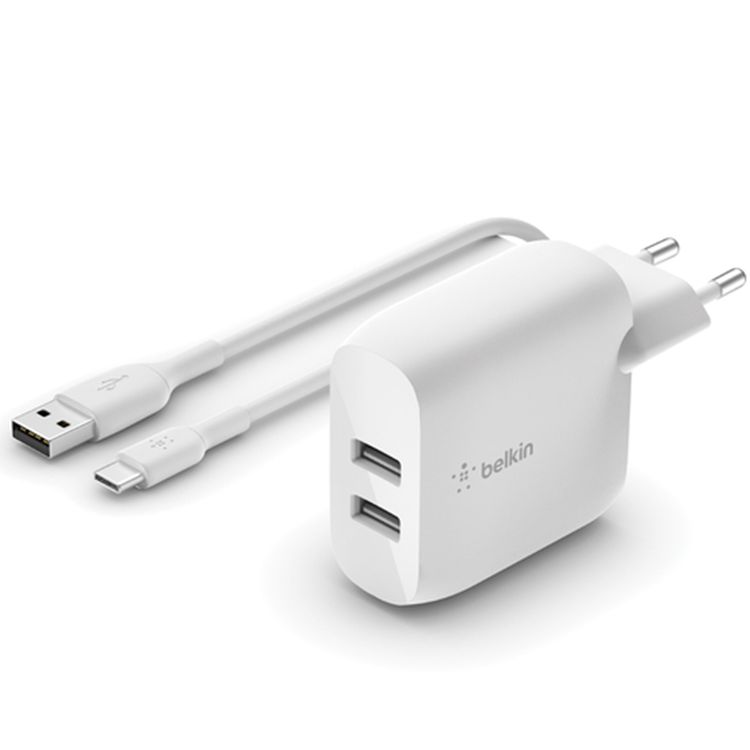 Belkin Boost Charge Dual USB-A Wall Charger 24W with USB-A to Micro USB Cable 1M - White