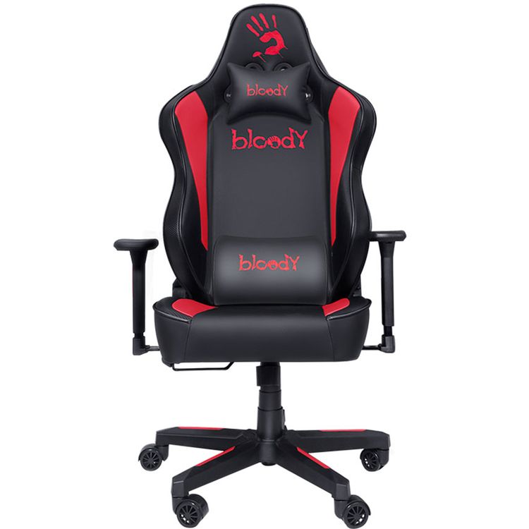Bloody Gaming Chair, Ergonomic Backrest, High-Density Foam Cushion, 3D Adjustable Armrests, Class 4 Hydraulic Piston, Soft & Reliable Pillow - Black / Red