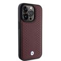 BMW Leather Case with Sign Diamond Pattern for iPhone 15 Pro - Burgundy