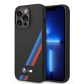 BMW M Collection Liquid Silicone Case with Slanted Tricolor Stripes PU iPhone 14 Pro Compatibility - Black