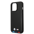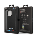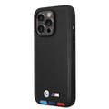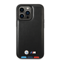 BMW M Collection PU Leather Case with Hot Stamped Tricolor Parts and Printed Logo iPhone 14 Pro Max Compatibility - Black