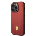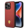 CG Ferrari Magsafe Compatibility Genuine Leather Hard Case with Curved Line Stitched iPhone 14 Pro Compatibility - Red