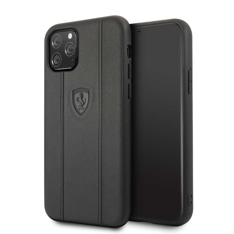 CG MOBILE Ferrari Off Track Leather Embossed Line Phone Case Compatible for iPhone 11 Pro (5.8") Mobile Case Suitable with Wireless Charging Officially Licensed - Black