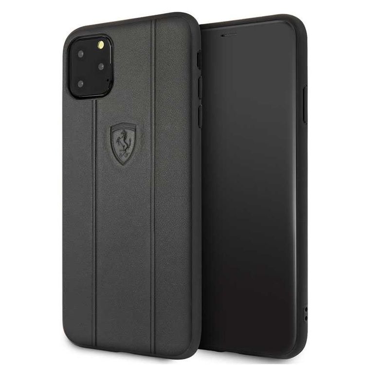CG MOBILE Ferrari Off Track Leather Embossed Line Phone Case Compatible for iPhone 11 Pro Max (6.5") Mobile Case Suitable with Wireless Charging Officially Licensed - Black