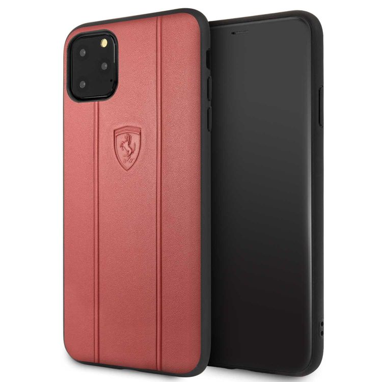 CG MOBILE Ferrari Off Track Leather Embossed Line Phone Case Compatible for iPhone 11 Pro Max (6.5") Mobile Case Suitable with Wireless Charging Officially Licensed - Red