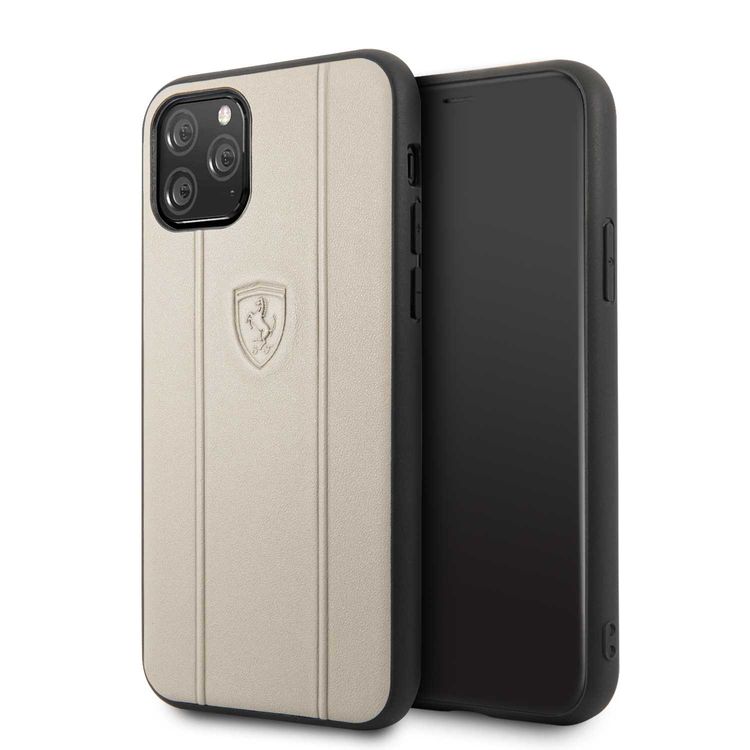 CG MOBILE Ferrari Off Track Leather Embossed Line Phone Case Compatible for iPhone 11 Pro (5.8") Mobile Case Suitable with Wireless Charging Officially Licensed - Beige