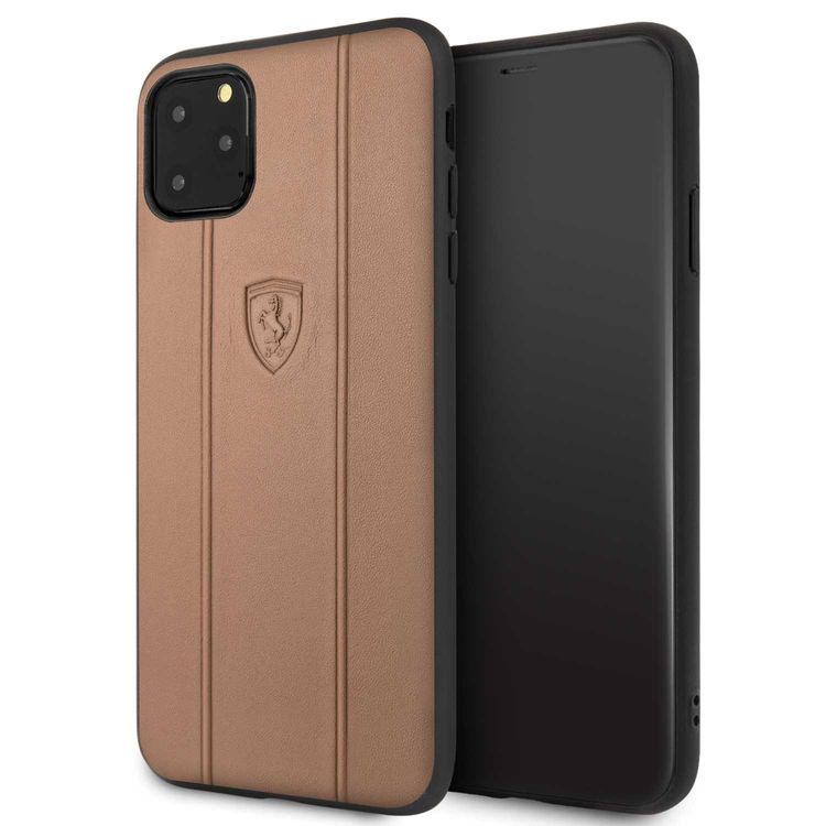 CG MOBILE Ferrari Off Track Leather Embossed Line Phone Case Compatible for iPhone 11 Pro Max (6.5") Mobile Case Suitable with Wireless Charging Officially Licensed - Camel