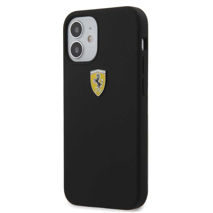 CG Mobile Ferrari On Track Liquid Silicone Case Metal Logo for iPhone 12 Mini (5.4") Officially Licensed, Premium Silicone Case, Shock Resistant, Scratches Resistant - Black