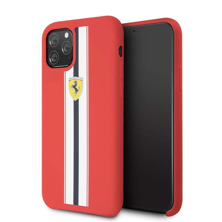 CG Mobile Ferrari On Track & Stripes Silicon Case iPhone 11 Pro (5.8") Officially Licensed, Shock Resistant, Scratches Resistant, Easy Access to All Ports - Red