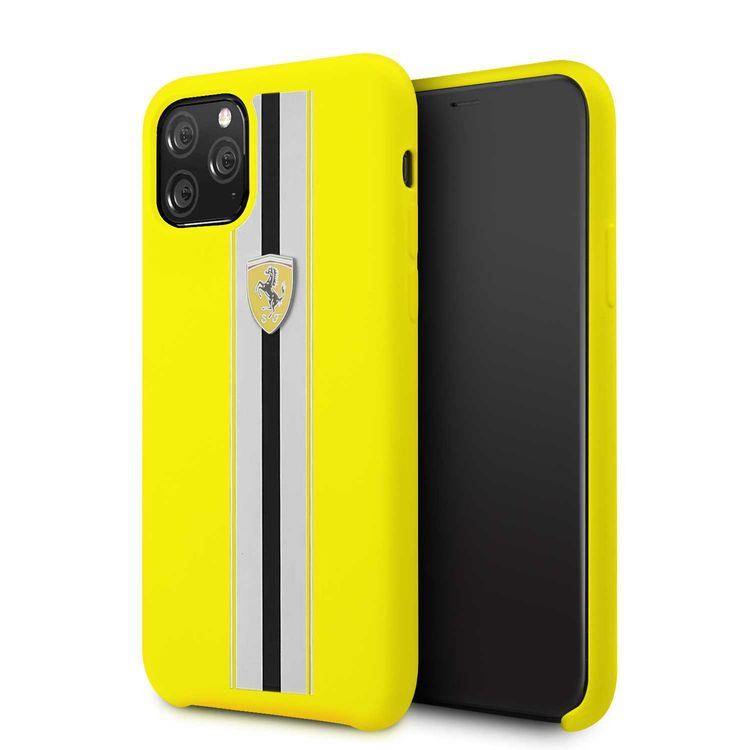 CG Mobile Ferrari On Track & Stripes Silicon Case iPhone 11 Pro (5.8") Officially Licensed, Shock Resistant, Scratches Resistant, Easy Access to All Ports - Yellow
