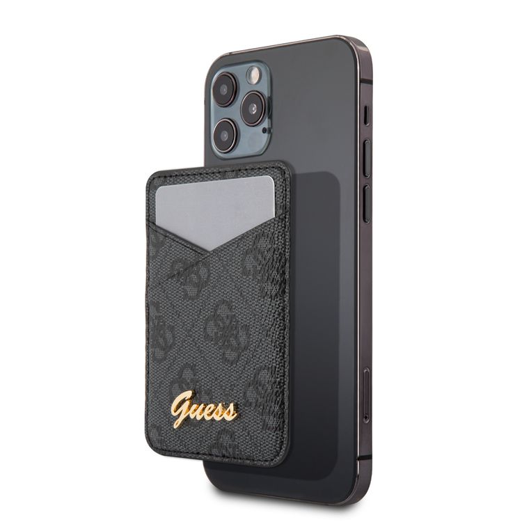 CG MOBILE Guess 4G Triangle Wallet Cardslot with Magsafe for iPhone 12 Pro Max, 12/12 Pro, 12 Mini, Magnetic Wallet Card Holder, Phone Back Slot Wallet Card Case Officially Licensed Gray