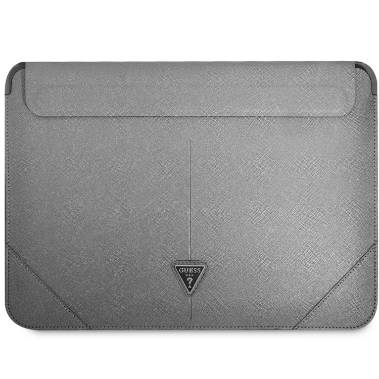 CG Mobile Guess GUCS16PSATLG Saffiano Computer Sleeve with Metal Triangle Logo 16" Protection Bag for or Macbook / Laptop up to 16 inches - Silver