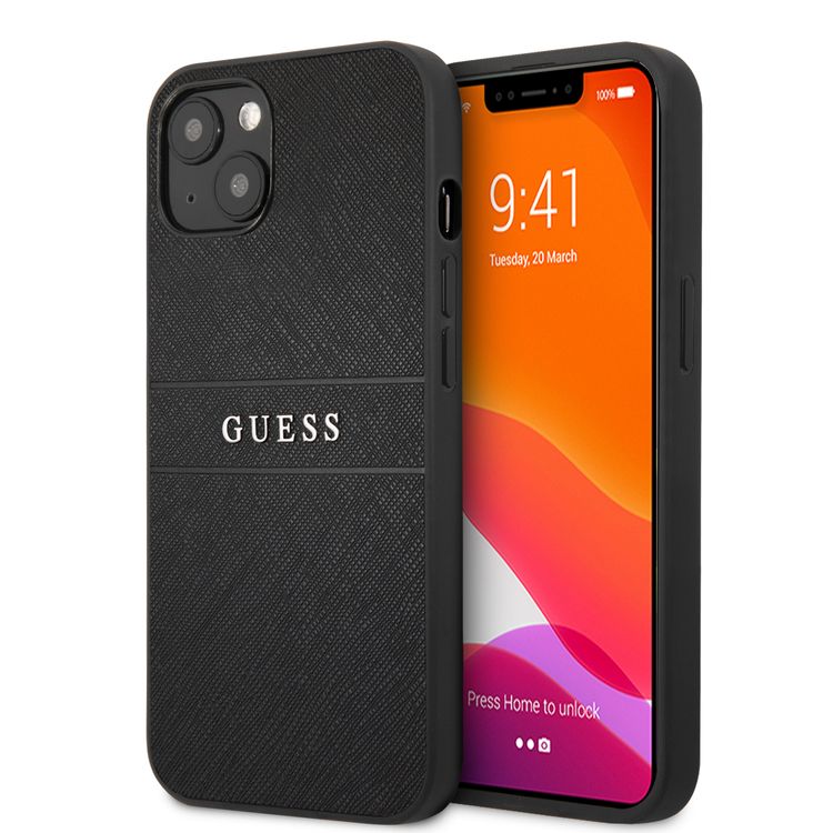CG MOBILE Guess PU Leather Case Saffiano with Metal Logo Hot Stamp Stripes Compatible for iPhone 13 (6.1") Anti-Scratch, Easy Access to All Ports
