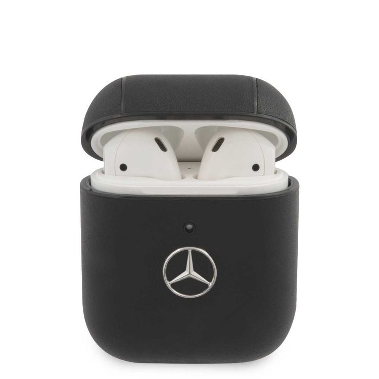 CG MOBILE Mercedes-Benz Leather Case with Metal Logo for AirPods 1/2 Shock Absorption, Drop Protection, & Dustproof Protective Cover Officially Licensed Black