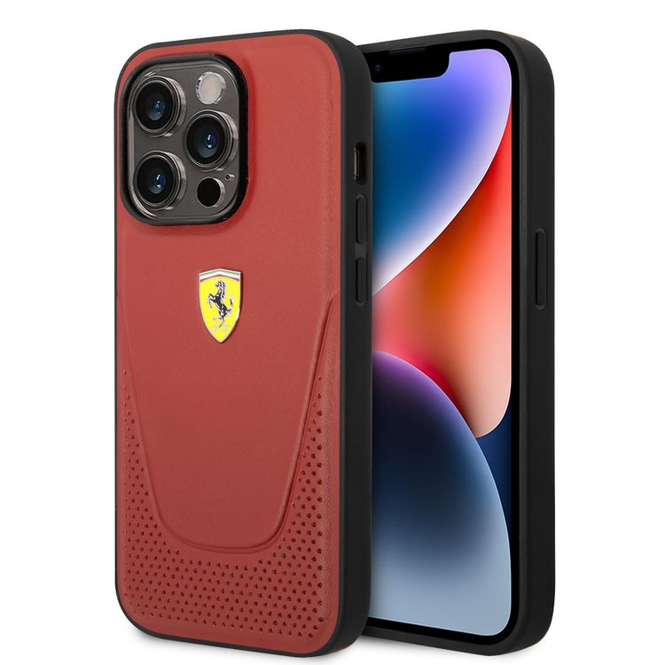 Ferrari Genuine Leather Case Vici Perforated iPhone 14 Pro Max - Red