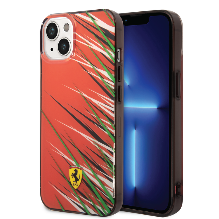 Ferrari PC/TPU Case with Double Layer Grass Print iPhone 14 Compatibility - Red