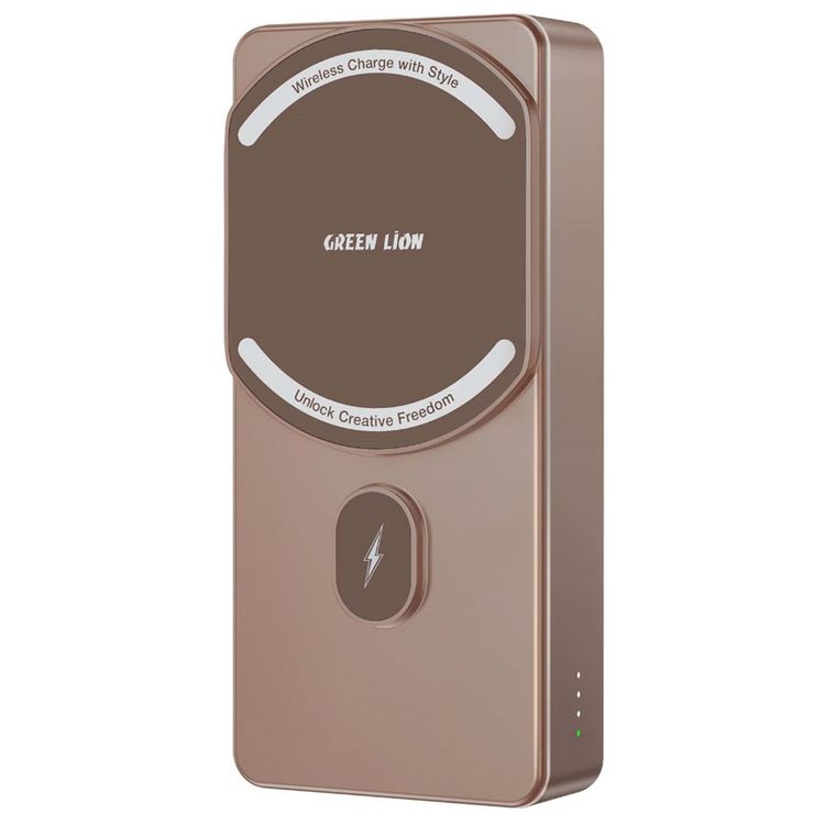 Green Lion 10000mAh Milton Power Bank, MagSafe Compatible, 15W Wireless Charging, LED Charge Indicator, Pure Cobalt Battery, Strong Magnets, Type-C Input Interface - Desert Titanium
