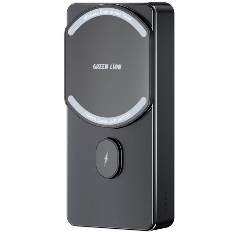 Green Lion 10000mAh Milton Power Bank, MagSafe Compatible, 15W Wireless Charging, LED Charge Indicator, Pure Cobalt Battery, Strong Magnets, Type-C Input Interface - Black