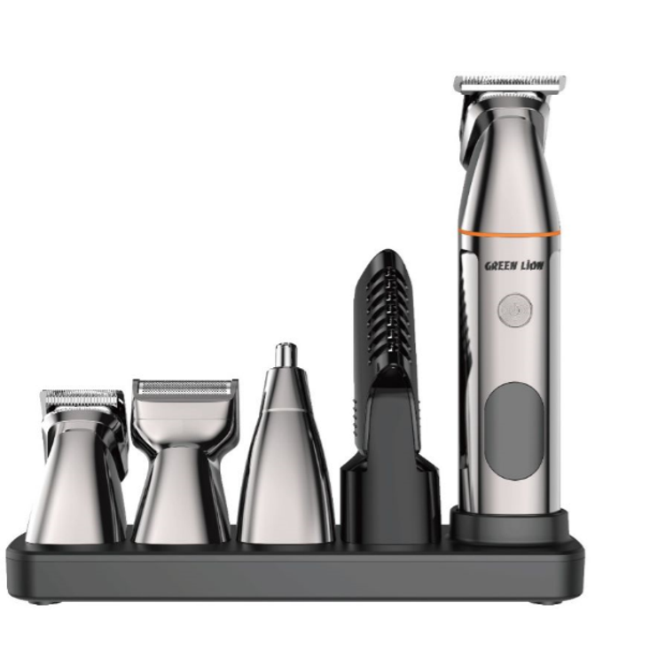 Green Lion 5-in-1 Multi-Function Hair Clipper Set with Multifunctional Replaceable Heads, LED Display, Cord and Cordless Functionality, 90 Minutes Working Time, Waterproof - Black